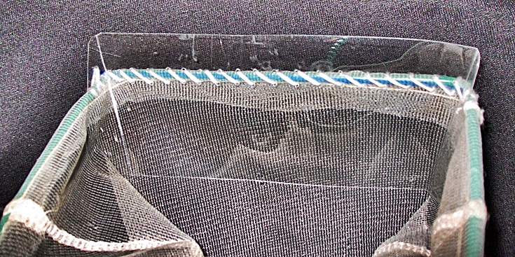 Eredetileg a maláj tornyosok üvegre kirajzó egyedeinek villámgyors és veszteségmentes-értsd nem peregnek vissza-kiszedésére készítettem,de mutatok még egy képet magáról a "pengéről",ez a PET palack oldalfalából készül,varrással applikáltam egy hálómra:
