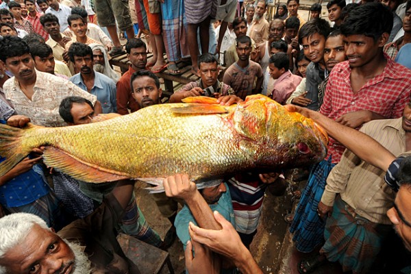 Ritka aranyszine miatt negyvenezer dollárért kelt el egy hal egy bagladesi halpiacon.