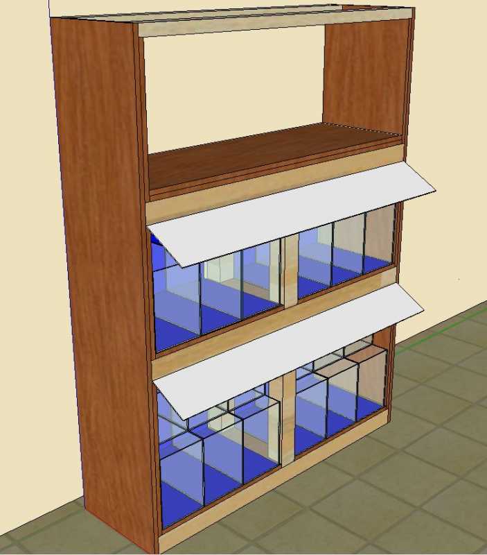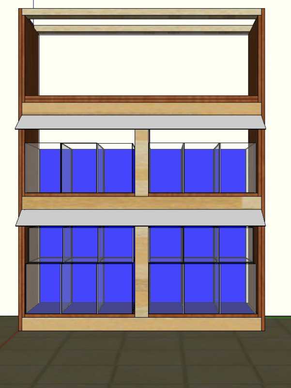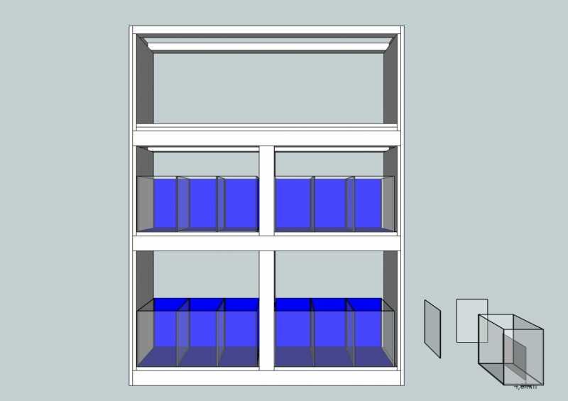 A felső akik maradnak viszont alul és középen ilyen elrendezés lessz. Még annyi hogy az alsó kis akikra még rálessz ültetve egy egy 30x20x20 as ikra keltető aki. majd arrol is rakok képet hogy hogyan képzelem.