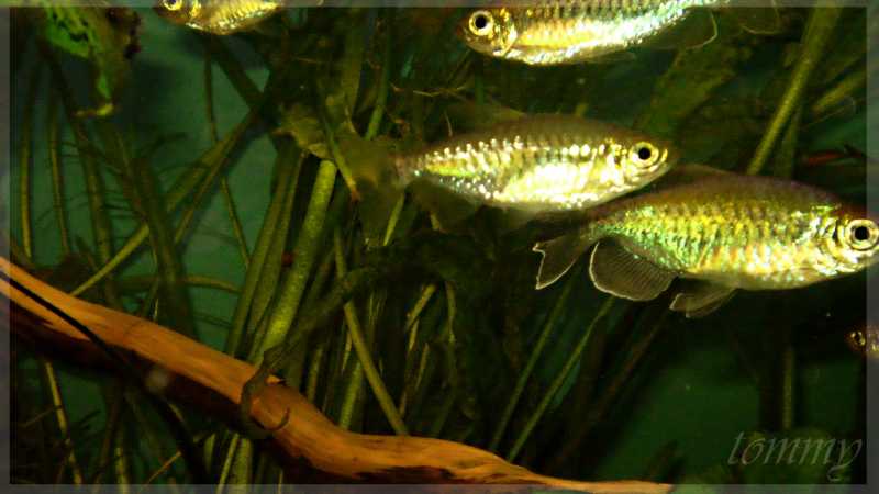 15-20 darab kifejlett hal, 40 literes akvárium (50*40*20 magas!), víz 5-6 nk, pH 6-6,5 , kb. fél cm-nyi finom homok talaj, porlasztós szivacsszűrő, 24-26 °C, jávai moha. Világítás nincs, mert az akvárium üvegházban van, de csak alsó szinten. Hetente van 20% vízcsere, etetés napi kétszeri frissen kelt Artemia.