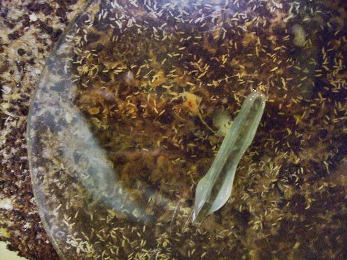 Ahelyett hogy feldúsult volna az állomány,semmi nem mozdult-egészen addig míg meg nem láttam az első kis férgecskét,amit megdöbbenten azonosítottam E.buchholzi-ként!Gondolkodjunk csak:mivel megszűntek az életfeltételek nyilván túlélő kokonokba zárkóztak,vagy utolsó erejükkel még betokozódtak vagy mi..:DEsetleg a kokonjaik túlélik a szárazságot is.