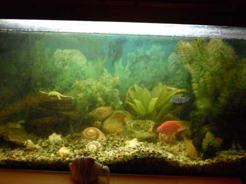 Azért nem hagytam, hogy folytassák a gondozást a szülők, mert féltem, hogy a kicsiket beszívná a motoros belsőszűrő, meg azért, mert szerintem a sok már hal megette volna őket, ha a szűlők nem... 2 egész nagy torokatum, dániók, endlerek, molly, vörös neonok voltak még az akváriumban.