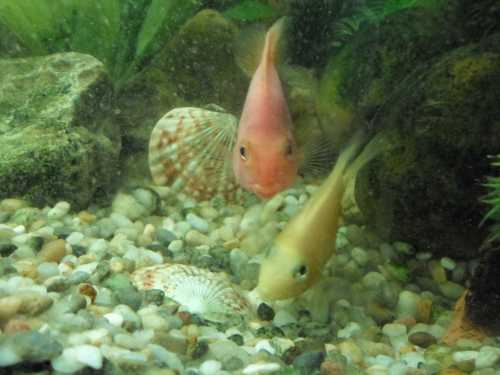 Ramireziket próbáltam egy ideig szaporítani elég kevés sikerrel, egészen pontosan az eredmény most 3 db. ivaréréshez közeledő kis nőstény amit én hoztam össze a remirezi szülőkkel együttműködve. Egy külön, 80 liter körüli lágyvizes akváriumban volt 2 pár. Sokszor ikráztak, próbáltam többször benthagyni velük az ikrákat, főleg, hogy nem egyszer a homokba ívtak, mindig megették az ikrákat. Ha kavicsra ikráztak, akkor általában kivettem keltetni külön őket. A 3 sikeresen felnevelt hal az első próbálkozásomból maradt, ekkor egy egy-két hónapig előre járatott szivacsszűrős akváriumba raktam az ikrákat, miután itt a víz nagy részét kicseréltem a nagy akváriumból vett vízzel. Kb. 20 lárva kelt ki, de 15 úszott el, tapasztalatlanságom miatt egyre fogytak, végül 4-et etetgettem sórákkal, majd fagyasztott cyclops-al is. Azon a napon, amikor átraktam volna őket a 3. társas akváriumba, az egy hímem megdöglött, így csak a 3 kis nőstény maradt. Ez után, ha kivettem keltetni az ikrákat, kb. 5-6szor, nem volt sikeres, szinte egyszersem keltek ki. Próbáltam frissen indított kisakváriummal, szivacsszűrővel, majd plusz levegőztetéssel, csak levegőztetéssel, majd egy befőttes üveggel próbálkoztam, amit beraktam egy szülőszobában a fő akváriumba, hogy hőmérsékletváltozás ne legyen és h fűtőt ne kelljen bele rakni. Próbáltam levegőztetéssel és nélküle is. A befőttesüveget megpróbáltam kifertőtleníteni, forróvízzel és mikrózással.....